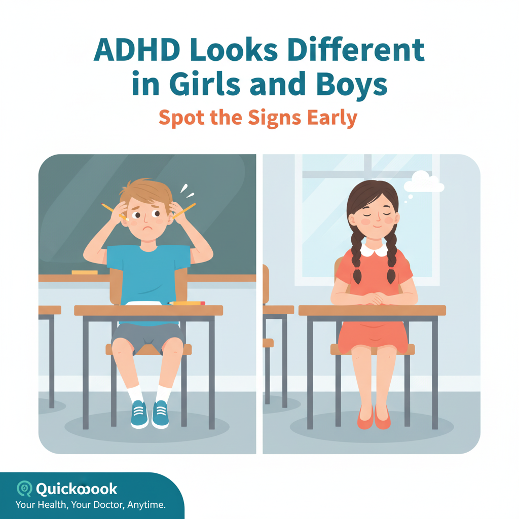 In this comprehensive Quickobook guide, a psychiatrist explains how ADHD diagnosis varies between girls and boys, what signs parents should look for, and how early treatment can support better learning, relationships, and emotional growth.