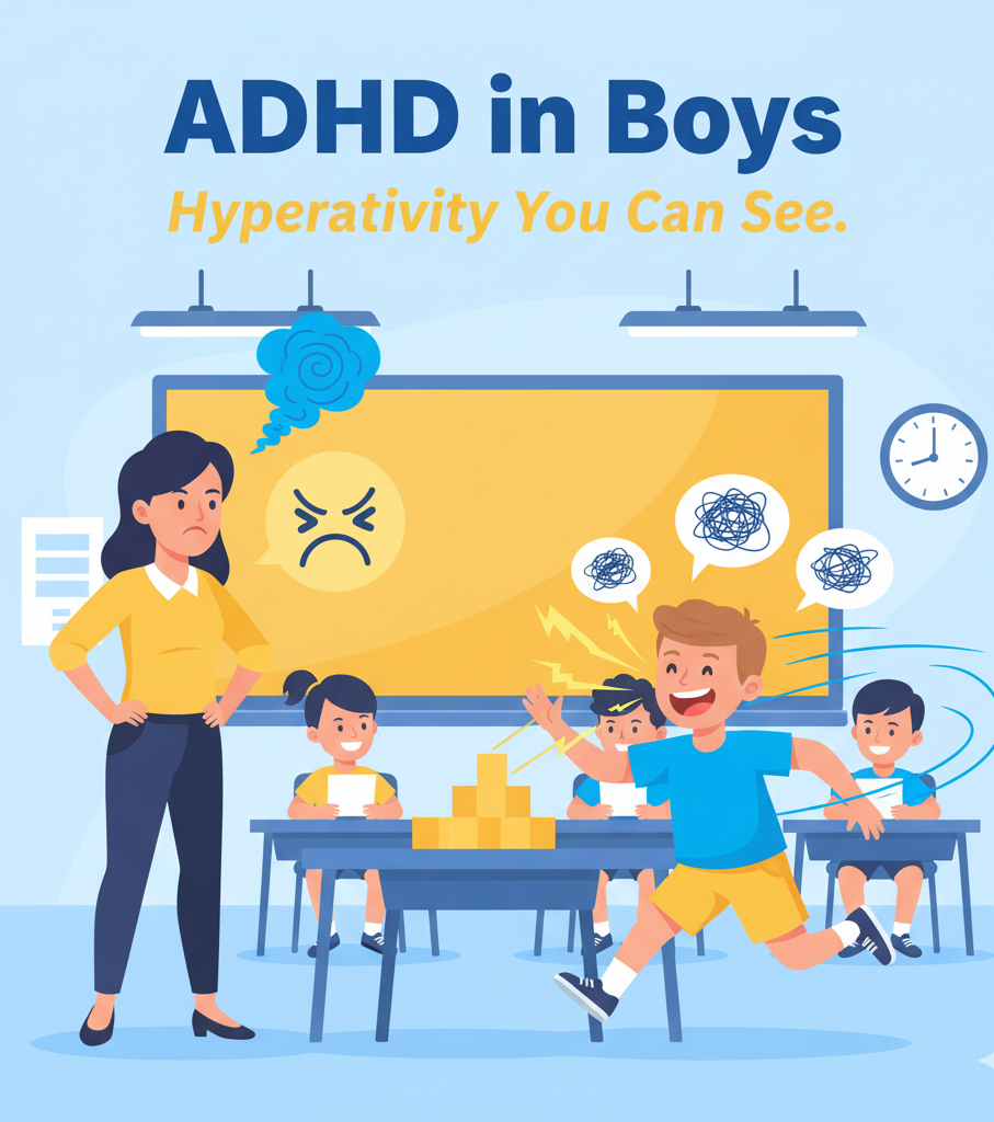 Because these behaviors are visible, teachers and parents usually refer boys to psychiatrists earlier, leading to timely ADHD diagnosis.