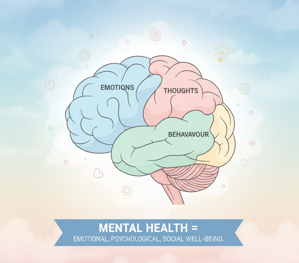 Mental health refers to your emotional, psychological, and social well-being. It affects how you think, feel, and act in daily life. It also influences how you handle stress, relate to others, and make choices. Good mental health is not the absence of problems—it’s about resilience, coping skills, and balance.