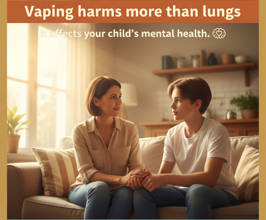 Vaping may seem like a trend, but its effects on mental health and development can last a lifetime. Talking early, staying informed, and using supportive language can help your child stay strong against peer pressure.