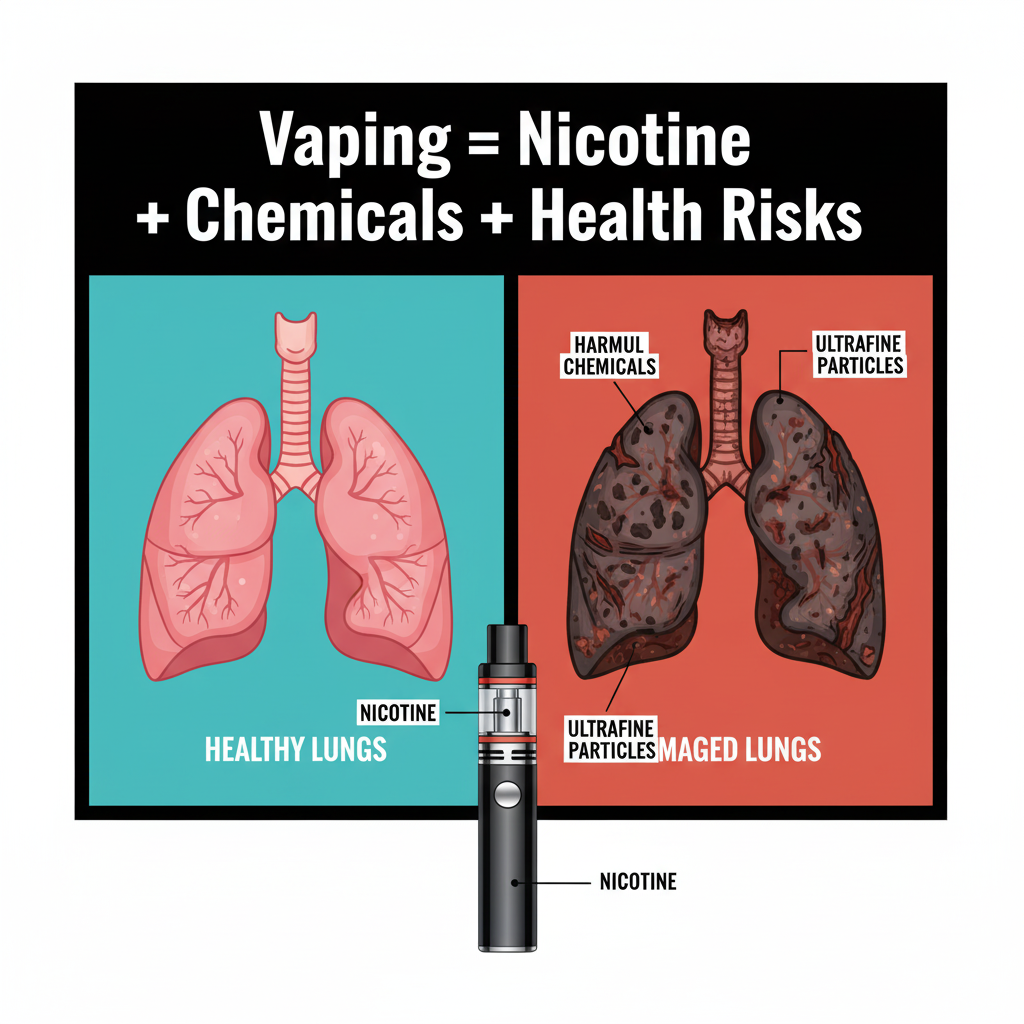- “Vaping is safer than smoking.” → It still harms the lungs and brain.