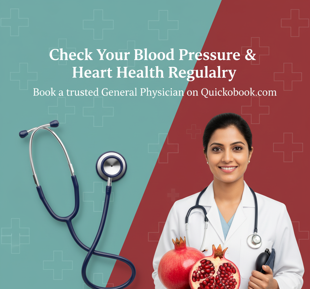 If you experience dizziness, uncontrolled blood pressure, or persistent fatigue despite eating healthy, consult your nearby general physician. Platforms like Quickobook help you find trusted doctors in your city for heart and wellness check-ups.